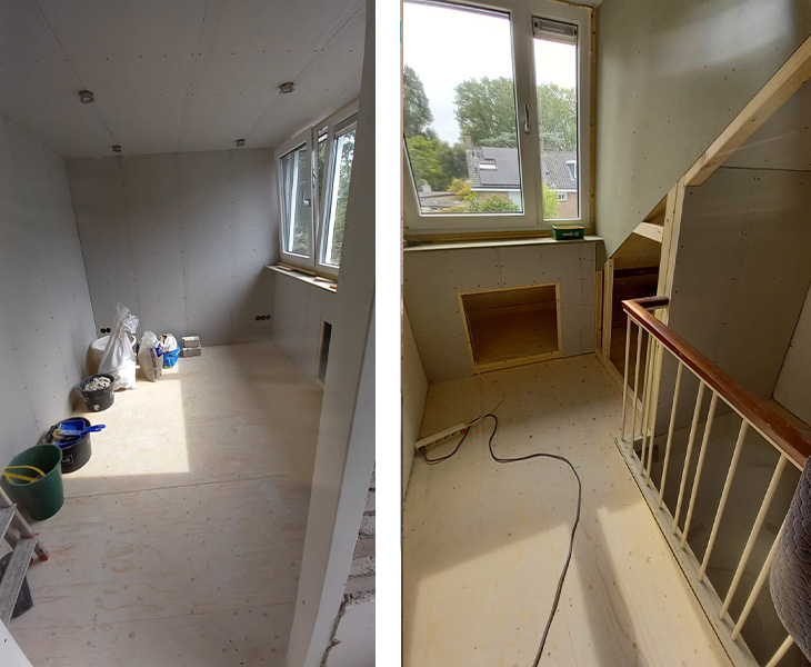 Ik kan een hele etage vakkundig afwerken. Met oog voor detail realiseer ik een strak, duurzaam en perfect passend resultaat in elke ruimte.